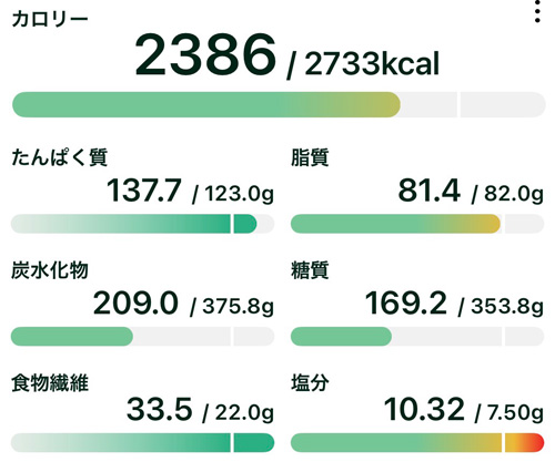 目標値を約 347kcal 下回る、完璧なアンダーコントロールです。