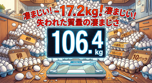 スーパーで買い足した卵の重さを感じるたびに、これだけの重量(卵約300個分!)を脱ぎ捨てた自分に驚きを隠せません。