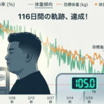目標まであと約16g。あと一歩、ゆで卵かプロテインを差し込むべきでした。 115日目にして、なお学ぶことは多い。この「改善の余地」こそが、私の伸び代です。