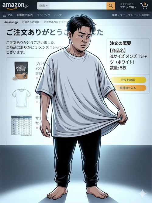 3. 【重大発表】3LのTシャツを5枚、一気にポチる。