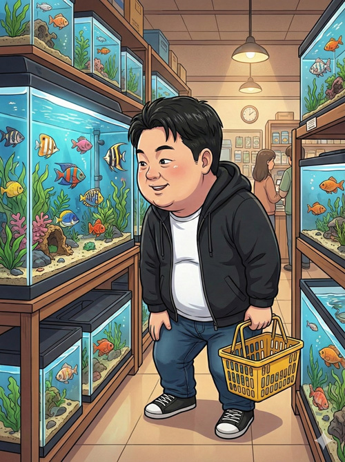 帰宅後、まずは水槽の掃除。新しい魚を放すと、水槽の中が一気に華やぎました。揺れるヒレを見ているだけで、ジムの疲れが癒えていくようです。 ここでもう一度体重計へ。