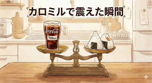 今まで、これを「ただの飲み物」としてガブガブ飲んでいた自分。コーラがこれほどまでに高カロリーな「液体モンスター」だったとは。慌てて残りを冷蔵庫に戻しましたが、無知の恐ろしさを痛感した瞬間でした。