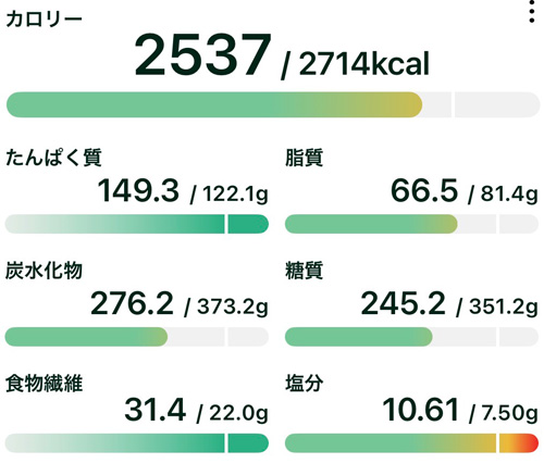 目標値を約180kcalも下回る、余裕の着地です。