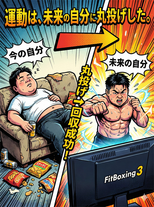 いつもならここで『FitBoxing 3』のグローブを握るところですが、私は「起床後の自分」にすべてを丸投げすることにしました。