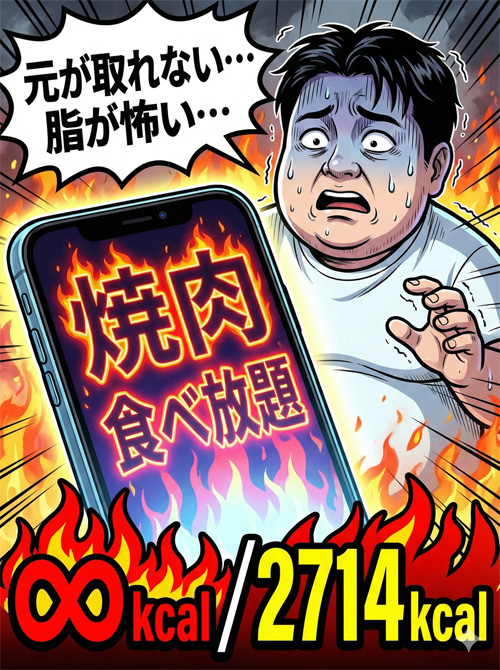 戦慄が走りました。 かつての私なら狂喜乱舞したであろうその文字。しかし今の私には、不安しかありません。 「今の食欲で、元が取れるのか?」「そもそも、あの脂を受け付けられる身体なのか?」 かつての強欲な食欲はどこへ消えたのか。食べ放題を「恐怖」と感じるほどに、私の身体は作り変えられていたのです。