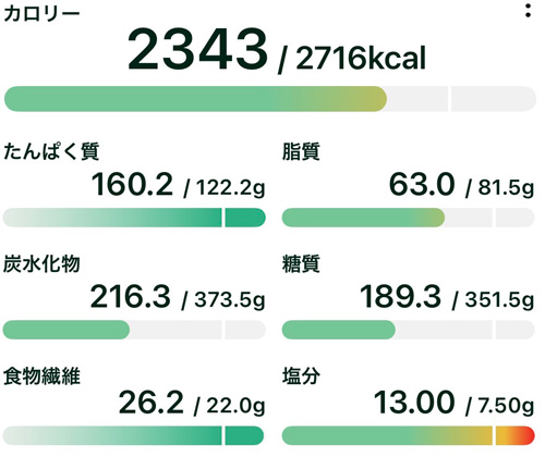 管理アプリ「カロミル」を詳細表示モードにしてから、私は新たな壁に直面しています。